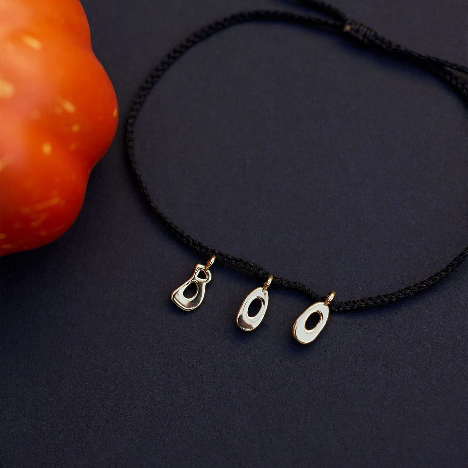 Both slight *and* spooky, the Boo Dainty Bracelet is a boo-tiful addition to your seasonal stack. The gold-plated letter charms give a customized feel while the faceted beads elevate the braided string.