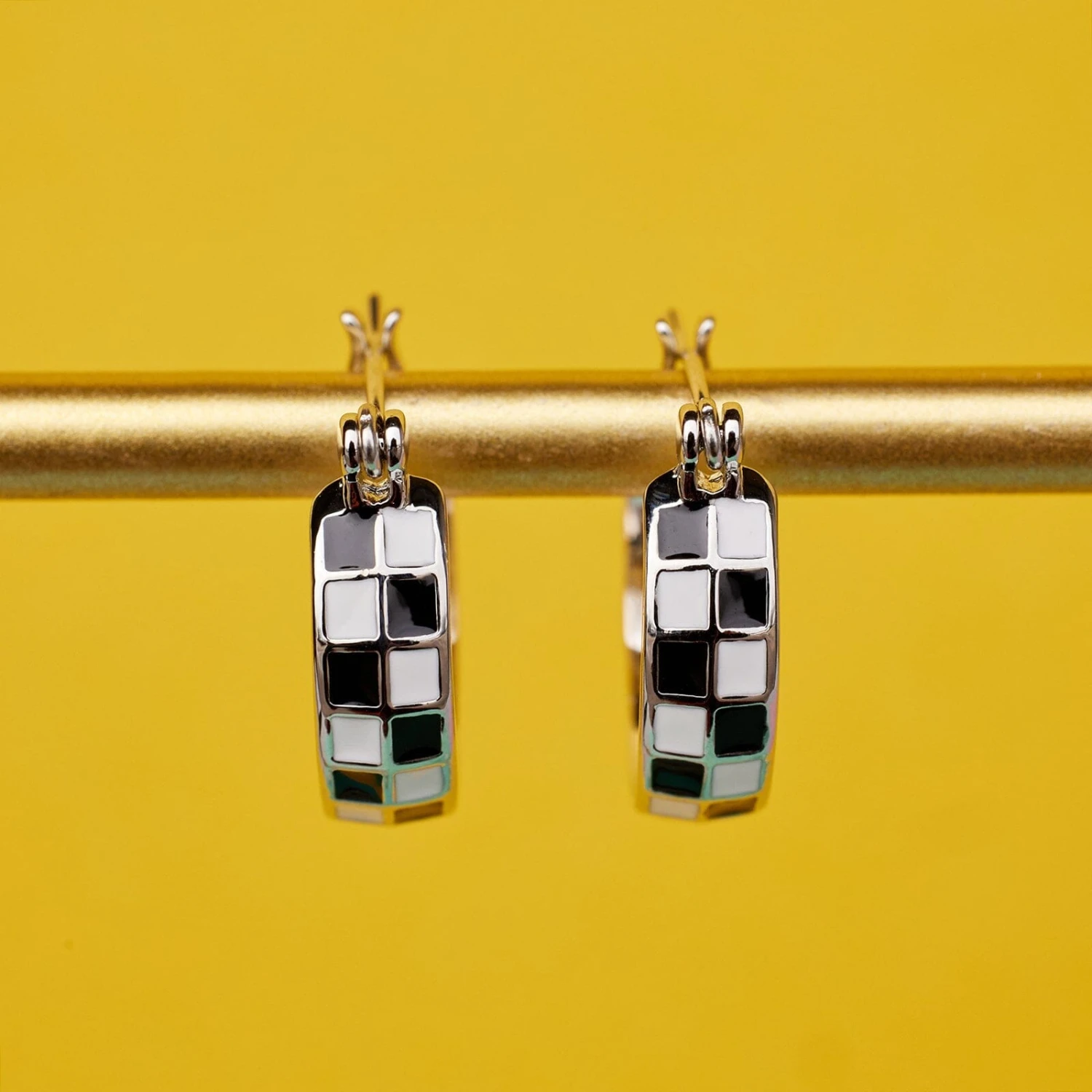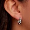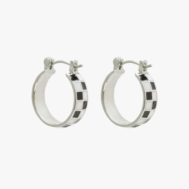 Give off some major retro vibes with our Checkerboard Huggies. This itty bitty silver style features an enameled black and white pattern that makes any outfit a little more mod.