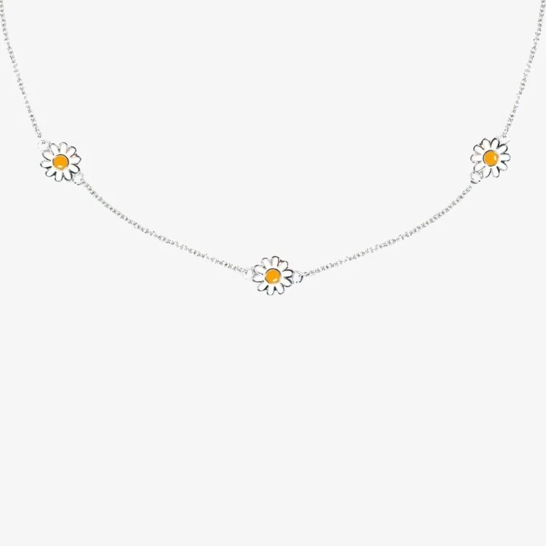 Nothing says spring like a bouquet of fresh flowers…which is where our silver Daisy Choker comes in. Designed with five enameled daisy charms spread across a delicate silver- plated chain, this easy-to-layer style has a girly, sorta-retro vibe that’s so in this season.