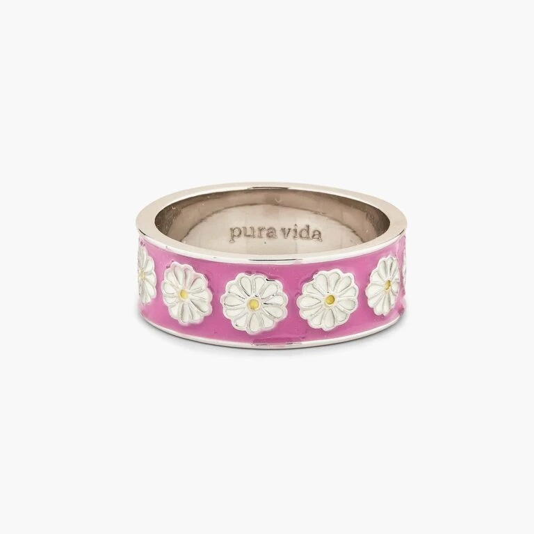 Who needs to buy flowers when you could have our Dreamy Daisy Ring instead?! This bold-band design comes in two color combos—purple with silver accents and white with rose gold accents—and features a whole bouquet of enameled daisies for the perfect spring style.