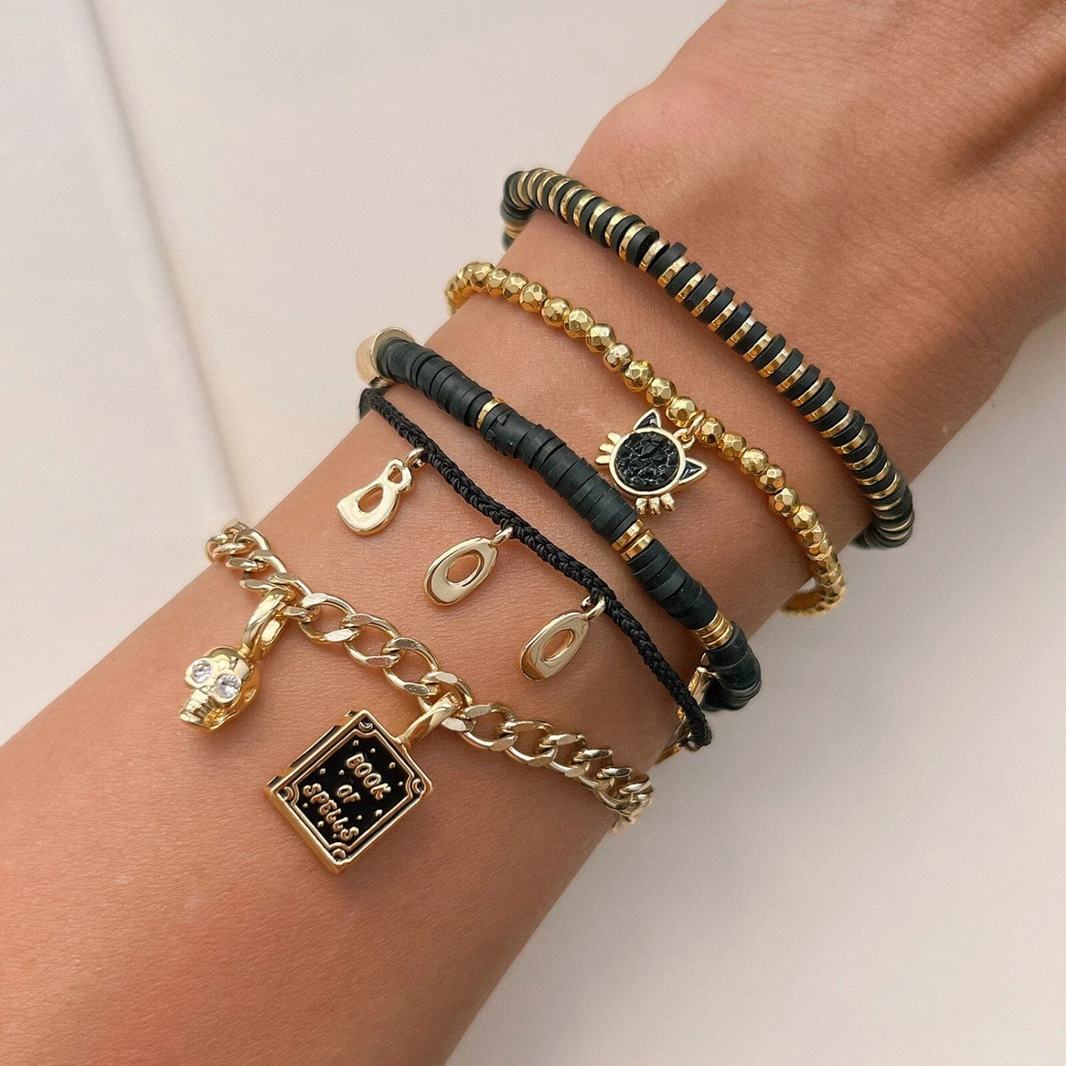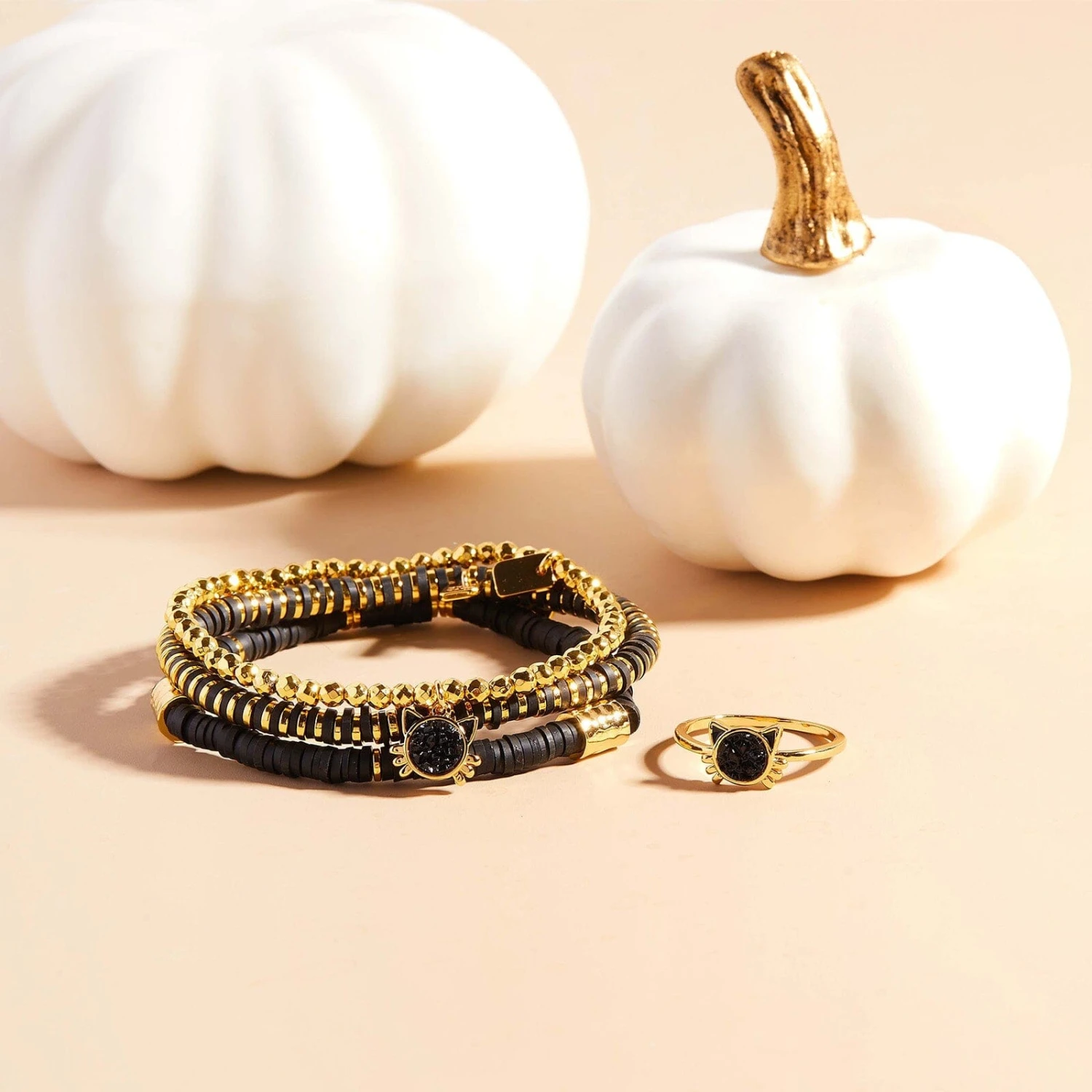 Whether you’re channeling fierce feline this Halloween or just love your furry friends, this spe-CAT-ular set *needs* a spot in your stack rotation. The mixed beaded materials meet at a stunning Drury cat charm, all in a black and gold color combination fit for the Roaring Twenties.