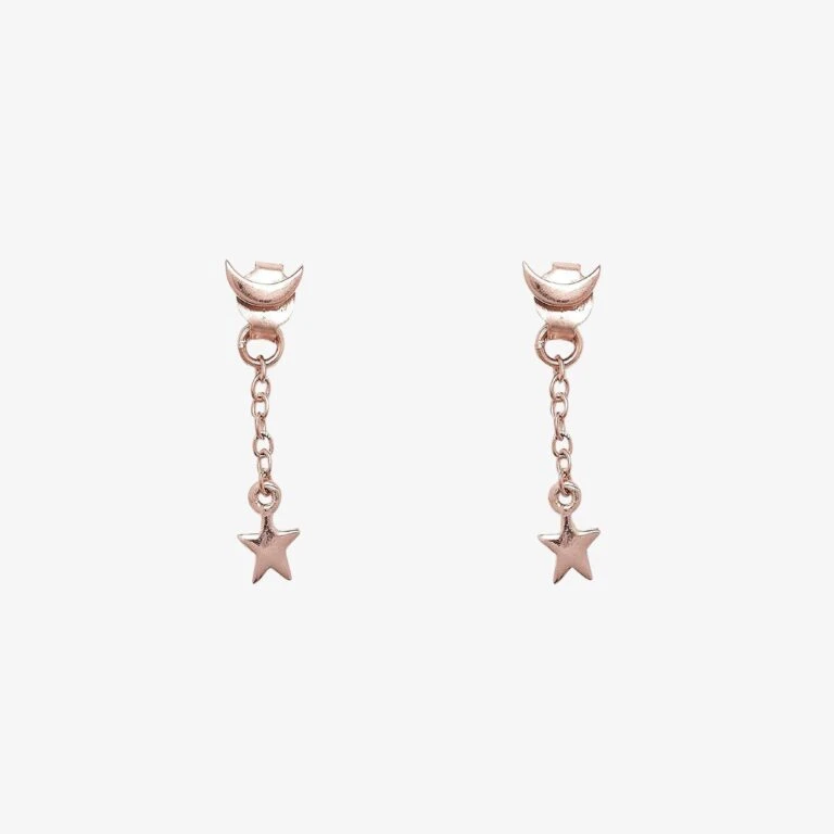 Our Falling Stars Earring Set is officially the cutest pair on the planet. This mismatched design features a crescent moon stud and dangling star charm in Sterling Silver or Rose Gold. Try ‘em with our Cosmos Choker for even more celestial charm.