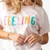 Feel all the feels with our new Feelings Tee! This short sleeve comes in a light pink wash with the word “FEELINGS” written across in pretty pastels. Never be afraid to talk about your feelings when you’re rockin’ this shirt! PS, after the first wash this one shrinks in all the right places for a perfect fit!
