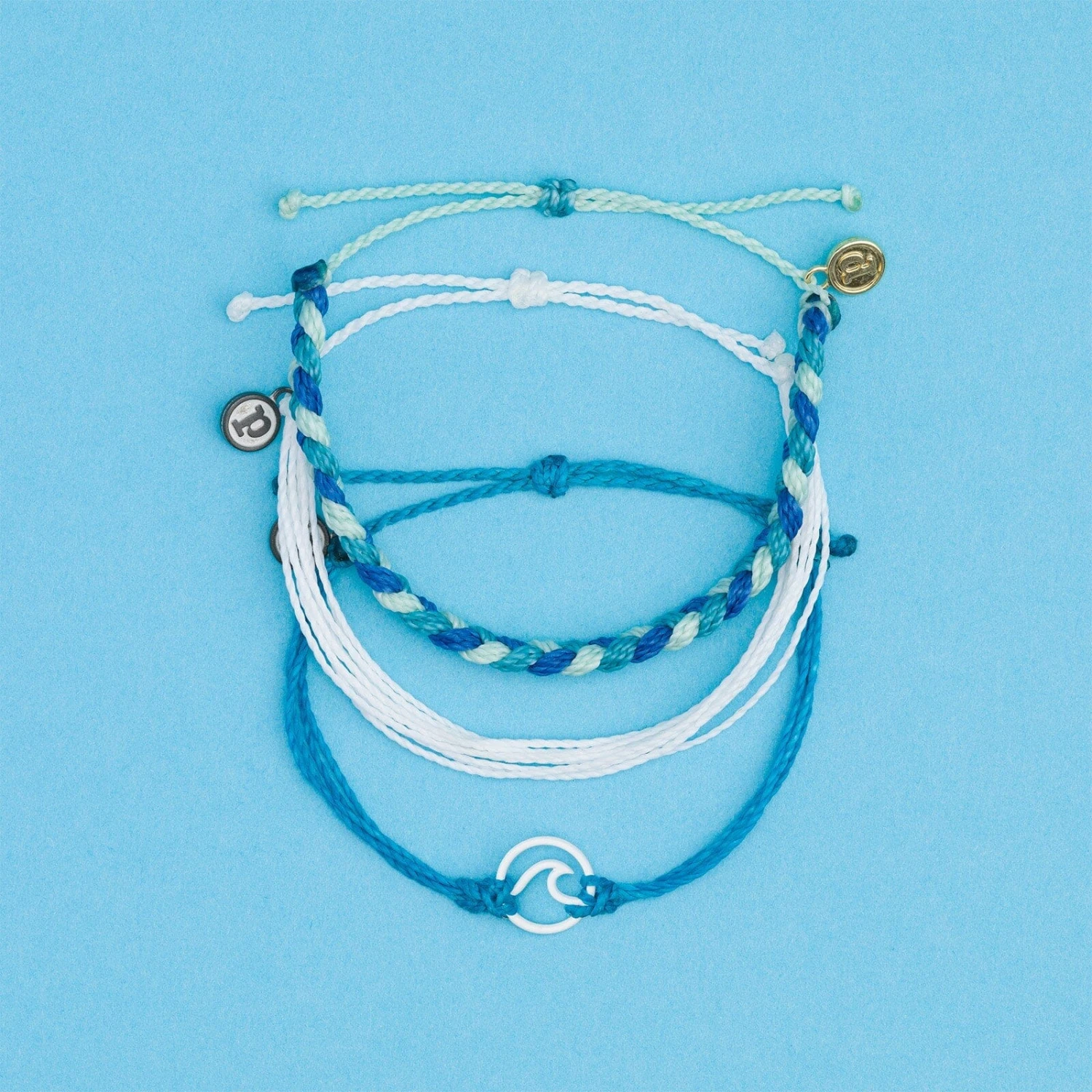A cool-toned, coastal colorway that brings you to the beach year-round. Secure this sea-inspired selection of bracelets to create a stunning stack or to wear individually.
