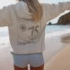 Give off a glowing vibe with our Golden Hour Classic Hoodie. In a blue tie-dye hue, this must-snag sweatshirt features a sunshine logo on the front and bold beach scene on the back for some seaside style no matter where you wear it.