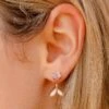 Show off your inner sea goddess with our Mermaid Fin Ear Jackets! This stunning set comes in a dreamy rose gold finish, with crystal quartz accents and an iridescent mermaid tail design. Whether you pair it with your swimsuit, cutoffs and a tee, or a cute sundress, this pair is sure to make major waves.