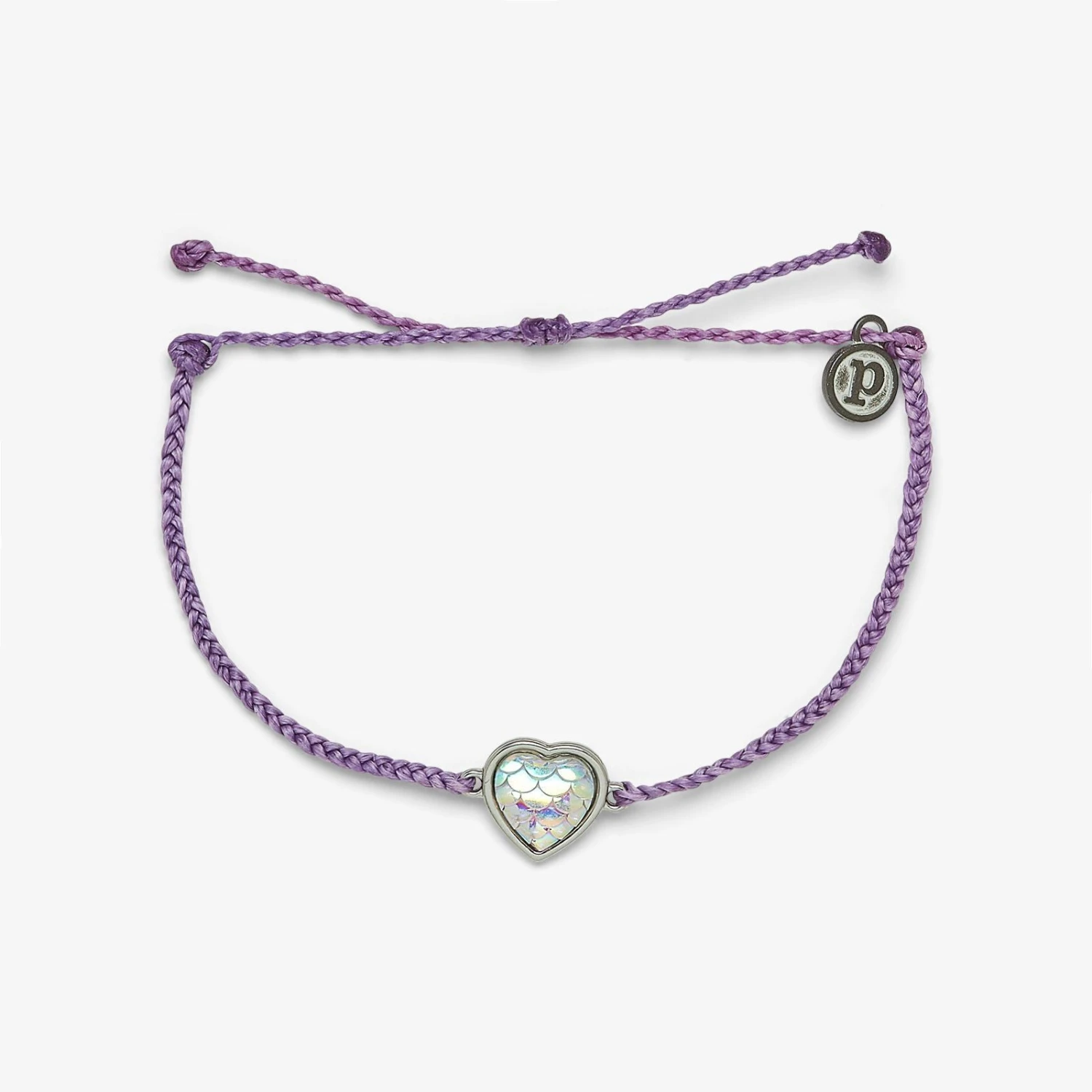 If you looooove the ocean, then you’ll adore our Mermaid Heart Charm Bracelet! This bitty braid design comes in four fresh hues and two metal finishes, with a dainty heart charm featuring an iridescent, scale-like effect.