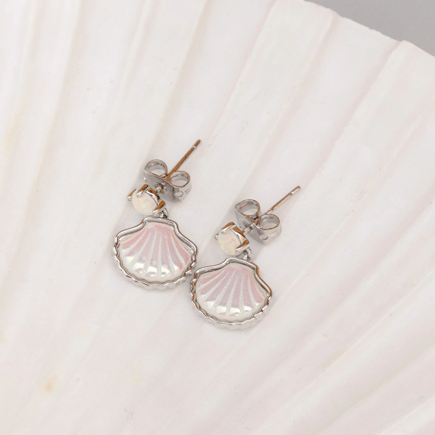 Why collect shells when you could have our Mermaid Shell Earrings instead?! This ultra-feminine, sea-inspired style features an opal stud and dangling shell charms, with an iridescent finish to help you shine extra bright.