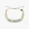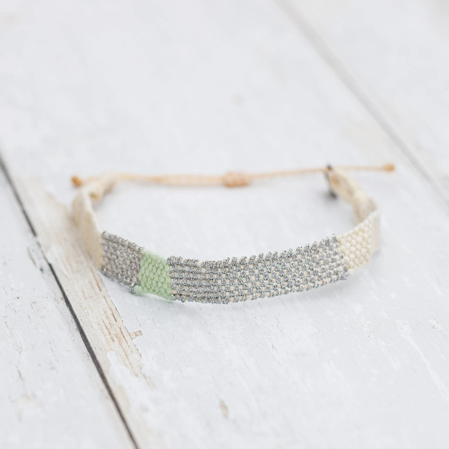 Our Metallic Woven Bracelet is the epitome of artisanal style. Handcrafted by our talented artisans in India, this beautiful bracelet features a duo of pretty pastel hues, with shimmering silver string to make your stack really sparkle.