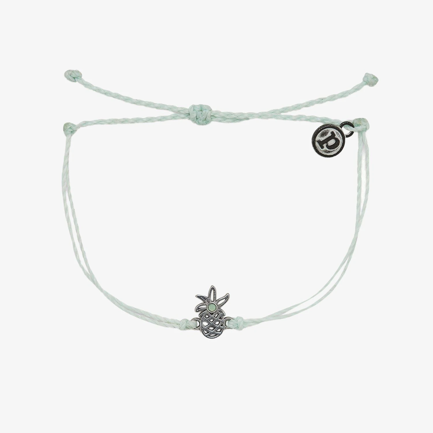 Rep our classic pineapple logo with the Open Pineapple Bracelet! This simple string design comes in four spring shades and two metal finishes, with a dainty pineapple charm and shiny stone for a little sparkle.