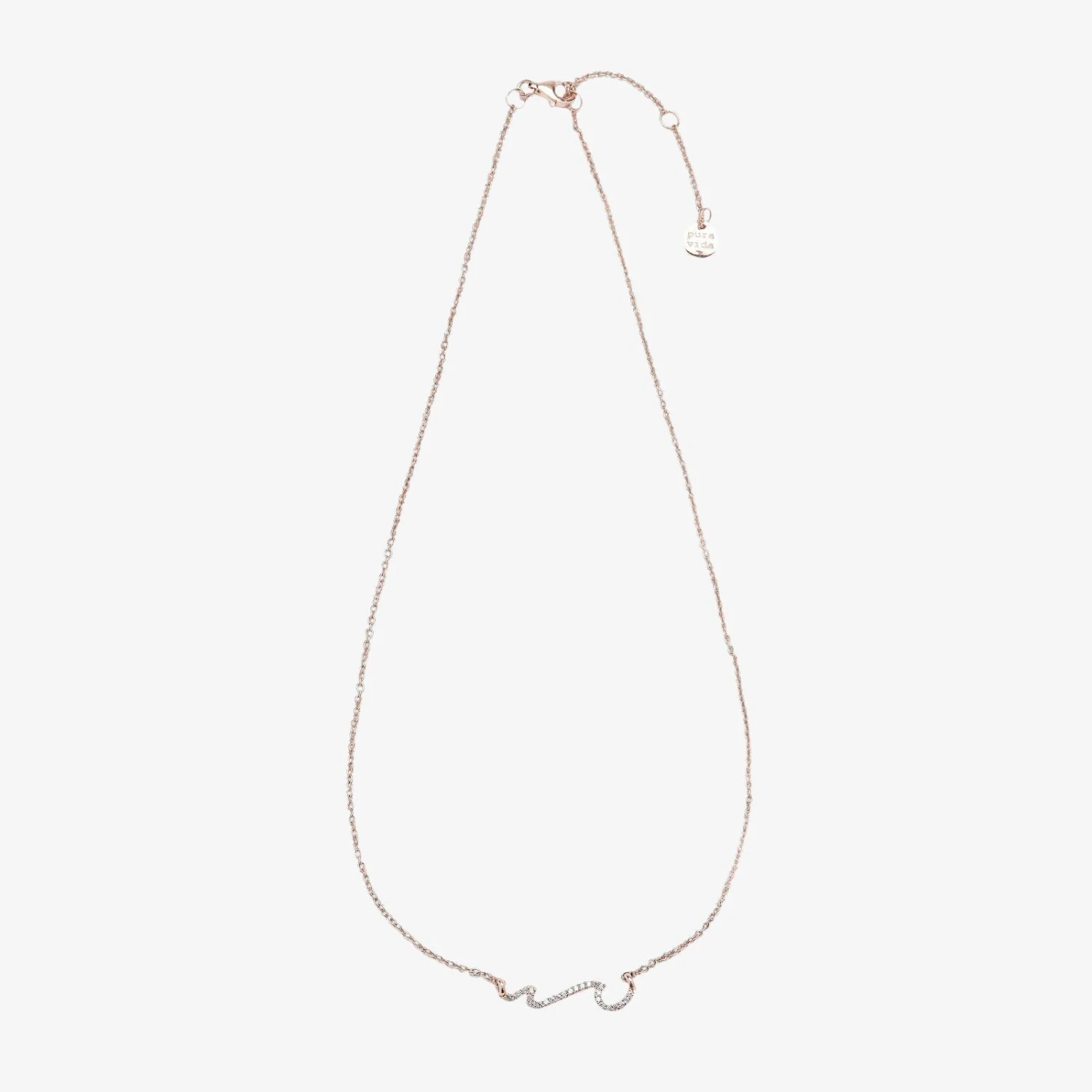 You’ll shimmer like the sea when wearing our new Pave Wave Necklace. This ultra-luxe style comes in two metal finishes—silver and rose gold—with a pave-encrusted Wave charm that takes your surf style to the next level. Pair it with our other Pave Wave styles for an even more eye-catching look.