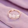 It’s a star-studded affair! Take your ring game to the next level with this dainty Pearlized 3 Star Ring in Rose Gold! Perfect by itself or added to a stack, this chic ring is made up of 3 pearlized star beads resting on a triple band plated in rose gold.