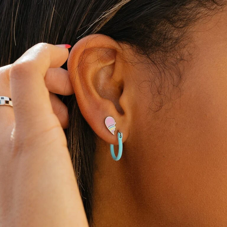 Stone & Enamel Heart Stud Earrings