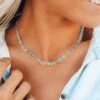 Create your own rainbow with this enameled multicolor chevron choker. This eye-catching chain of shimmering silver links and pretty pastels will add a pop of color to any neckline. Cue the compliments!