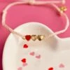 Red Cross Three Hearts Charm Bracelet