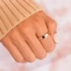 Our Statement Gemstone Ring was just crowned the most gorgeous piece *ever*. This chunky rose gold design is topped off with a diamond-shaped opalite stone, which shimmers and shines anytime the light hits it.