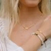 Carry the power of peace and protection with you everywhere you go. The delicate sunbeam detail against the striking crystal quartz center stone achieves a Cali-cool look and feel to build your aesthetic around.