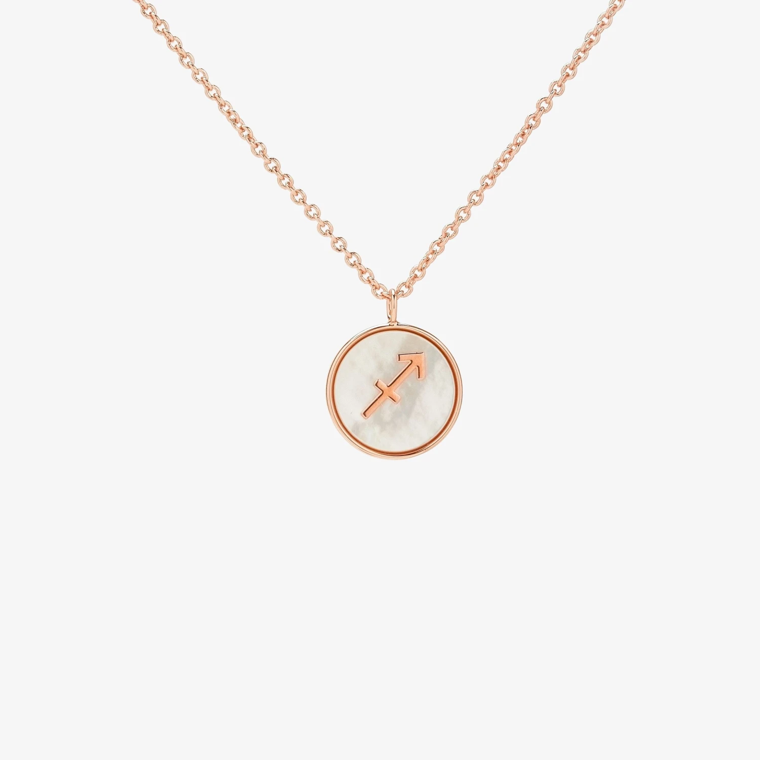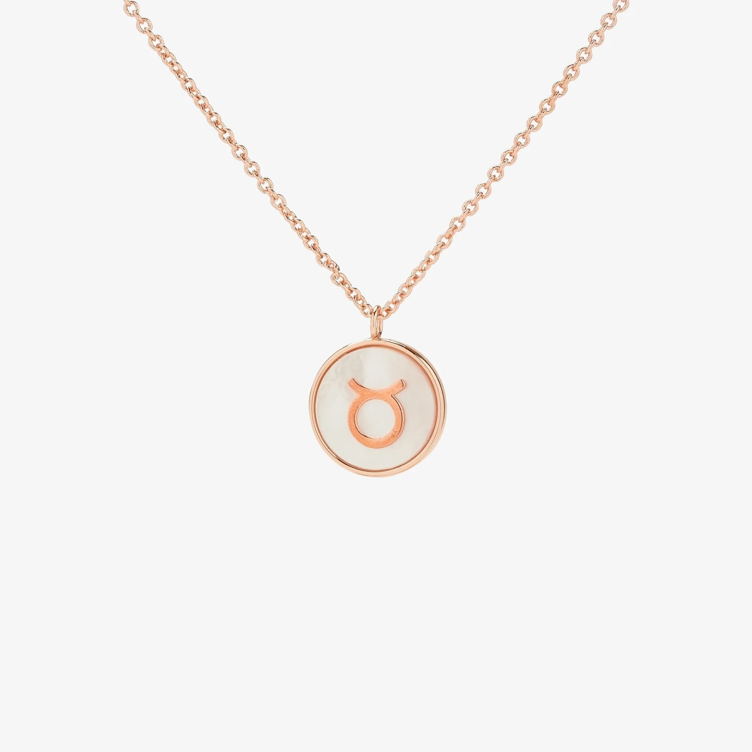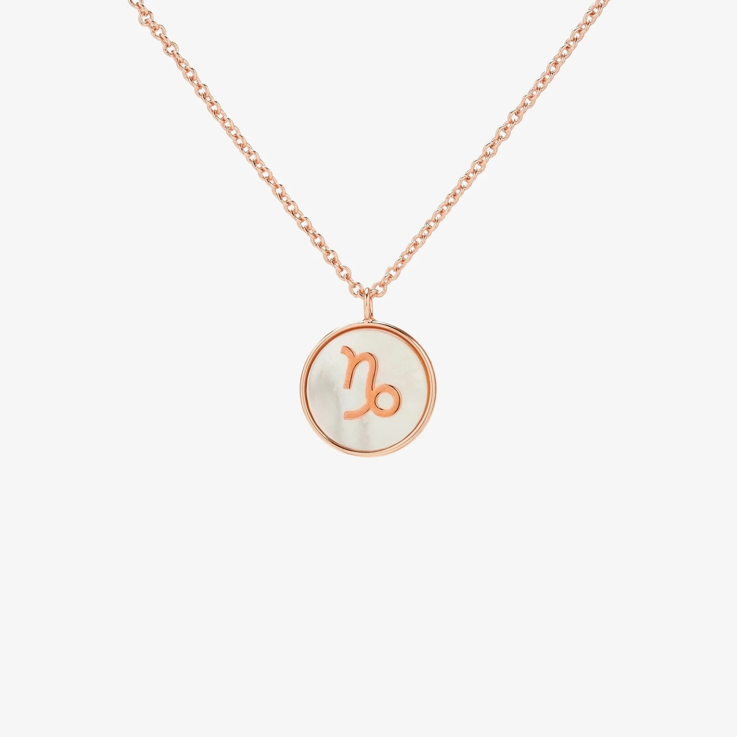 The stars have aligned to bring you our Zodiac Mother of Pearl Necklace! Available in all twelve astrological signs, each rose gold design features a Mother-of-Pearl-inlay pendant, with the zodiac symbol on one side and engraved name on the other.